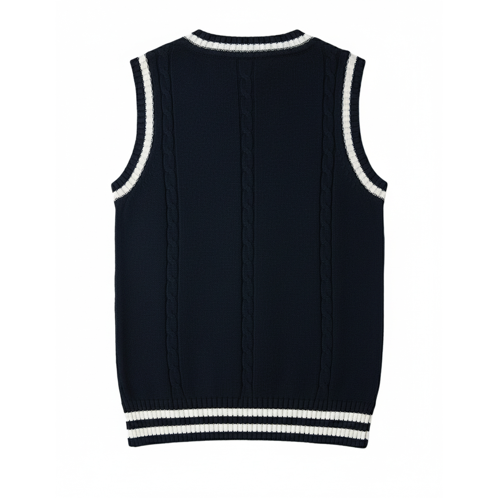 | Design | Classic button-up knitted vest design with ribbed edges. Available in cable-knit, ribbed, or plain knit patterns. Custom design options available. |